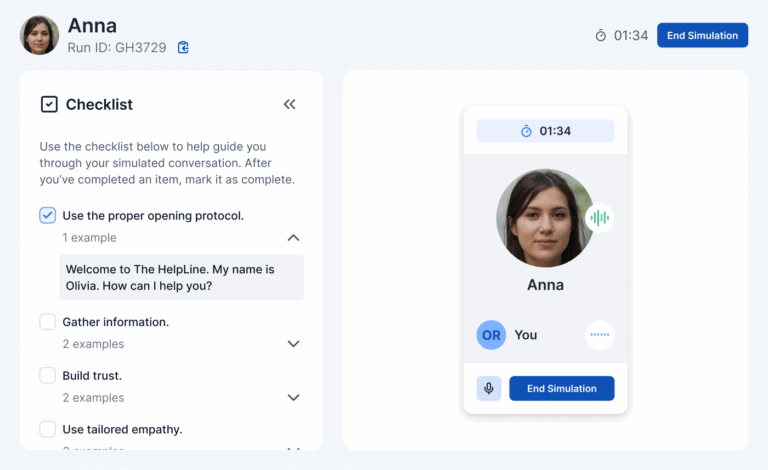 Create roleplays that match your team’s specific goals, from de-escalation techniques to complex problem solving.